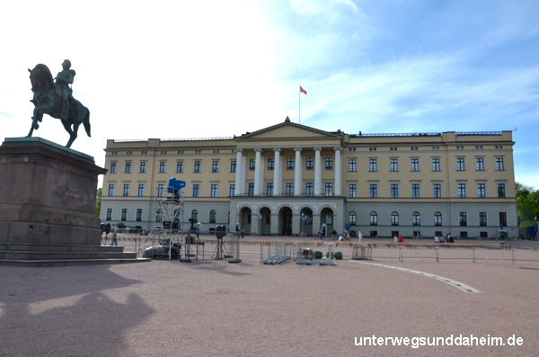 Der Amtssitz der Norwegischen Könige und die Residenz der Königsfamilie ist das klassizistische Schloss. Da ich am 200. Nationalfeiertag von Norwegen in Oslo war, wurde hier eine feierliche Parade gehalten. Das ganze norwegische Volk versammelte sich hier in traditioneller Tracht vor dem Königsbalken auf dem Mette Marit und Prinz Haakon – beide ebenfalls in Tracht – herunterwinkten. Das war schon ein ganz besonderes Erlebnis an so einem Tag in Oslo zu sein!