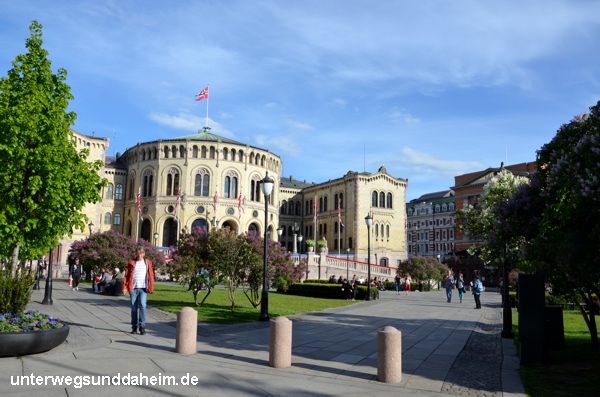 An der Haupteinkaufsstraße Karl Johanns Gate, die auch zum Schloss führt, befindet sich auch das Norwegische Parlament Stortinget. Seit 1866 versammelt sich hier die norwegische Regierung.