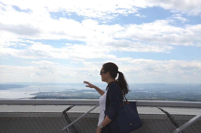 Man fährt mit dem Aufzug auf die Skischanze und ich sage euch: nie im Leben würde ich von dort oben mit den Skiern runterspringen. Es ist mir unbegreiflich wie Menschen das tun können und dabei am Leben bleiben. Bei dem Gedanken wird mir schon ganz kalt. Aber ein Besuch lohnt sich trotzdem, denn von dort oben hat man eine fantastische Sicht auf Oslo und den Fjord. Einfach Wahnsinn! Im Inneren befindet sich übrigens das norwegische Skimuseum.