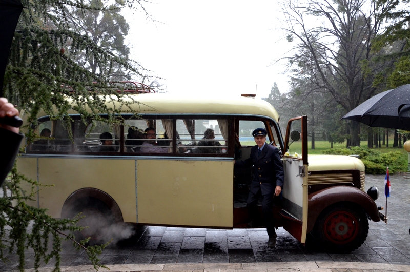 Morgens starteten wir vom Radisson Blu Old Mill mit einem alten Oldtimerbus zum Königspalast von Serbien im Belgrader Stadtteil Dedinje. Die drängenste Frage des Tages ist: Wer ist älter: Der Bus oder der Fahrer, der sichtlich Spaß daran hatte, uns durch seine Stadt zu fahren? Während der alte Bus den Hügel zum Palast hochschnauft, werden wir mit dem ersten Rakia begrüsst – „that makes the journey easier for us“ – sagt unsere Reiseführerin und das obwohl sich die Serben angeblich nie öffentlich betrinken. Den Oldtimerbus mit samt Fahrer kann man natürlich für solche Zwecke extra anmieten.