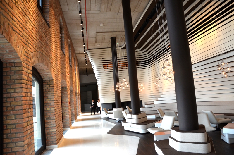 Einer jener Orte in der Stadt, an denen man getrost aufatmen kann und Fotos für nette Urlaubserinnerungen machen kann, ist das grade neueröffnete Radisson Blu Old Mill Belgrad. Hier steige ich aus, atme durch in einer Lobby, die weit von dem tristen Stadtbild da draußen entfernt ist. Das Radisson Blu Old Mill ist ein Kontrastpunkt zu dem Grau da draußen. Die Lobby ist ein architektonisches Meisterwerk. Warme Farben, gemütlicher Industriechic und weiche Formen laden sofort zum Wohlfühlen ein. Die „alte Mühle“ Belgrads wurde neuinszeniert vom Deutschen Architektenbüro Graft aus Berlin. Das liebe ich so an den Radisson Hotels – das Gespür für dezenten Urban Style – edles und modernes Design in allen Häusern und immer mit einem regionalen Bezug. Jedes Hotel von Radisson, das ich bisher besucht habe, hatte seinen ganz eigenen Charme, sein eigens Design, das die jeweilige Stadt und Umgebung perfekt in Szene setzt. So auch die „alte Mühle“ in Belgrad.