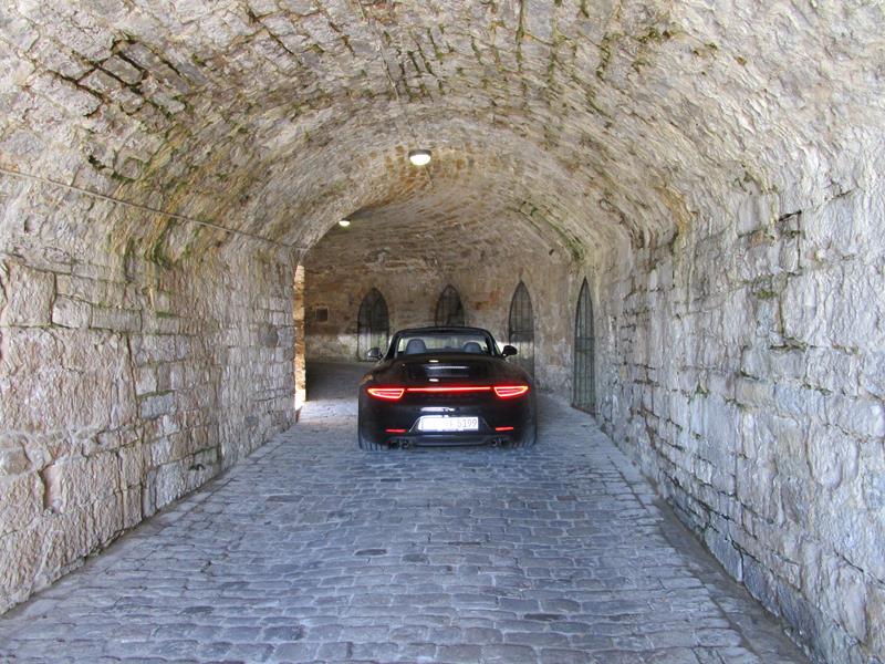 Angekommen auf Hohenzollern hatten wir exklusiv die Möglichkeit mit unserer 911er Flotte in den Innenhof einzufahren. Hier stellt man fest, die engen Tunnel und Wege waren nicht für diese Art Gefährte gebaut. Was natürlich der Hammer ist, Soundknopf im Tunnel an, wow – Gänsehaut.