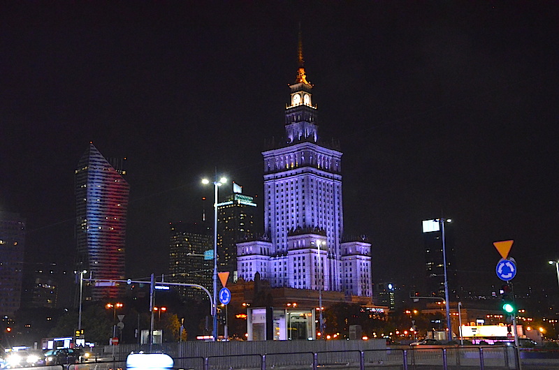 Außerhalb der Altstadt von Warschau gibt es allerdings auch reichlich zu entdecken. Das auffälligste Gebäude ist der Kulturpalast (Pałac Kultury i Nauki), der in seinem Bau ein wenig an das Empire State Building erinnert. Die Polen hassen dieses Gebäude, weil es ein Geschenk Stalins war und damit an die sowjetische Unterdrückung erinnert. Am liebsten würden sie es loswerden, aber leider steht es unter Denkmalschutz, sagt mein Kollege Borys. Erbaut wurde es in den 1950er Jahren und war einst das zweithöchste Gebäude Europas, heute ist es nur noch das höchste Gebäude von Polen. In der 30 Etage gibt es eine Aussichtsplattform auf 114 Metern. Wer hinauf will, muss sich allerdings in einen engen Fahrstuhl quetschen, in dem eine Dame noch die Knöpfchen drückt. Oben hat man dann die beste Aussicht über Warschau und sieht wie klein die Altstadt im Vergleich zu ganz Warschau eigentlich ist. Außerdem gibt es viele Grünflächen in der immerhin 1,7 Millionen Einwohner Stadt. Im Kulturpalast sind bis heute Kinos und Theater untergebracht. Rund um den Kulturpalast türmen sich weitere moderne Hochhausbauten in die Höhe. Hotel und Bürogebäude befinden sich hier fussläufig zum Hauptbahnhof.