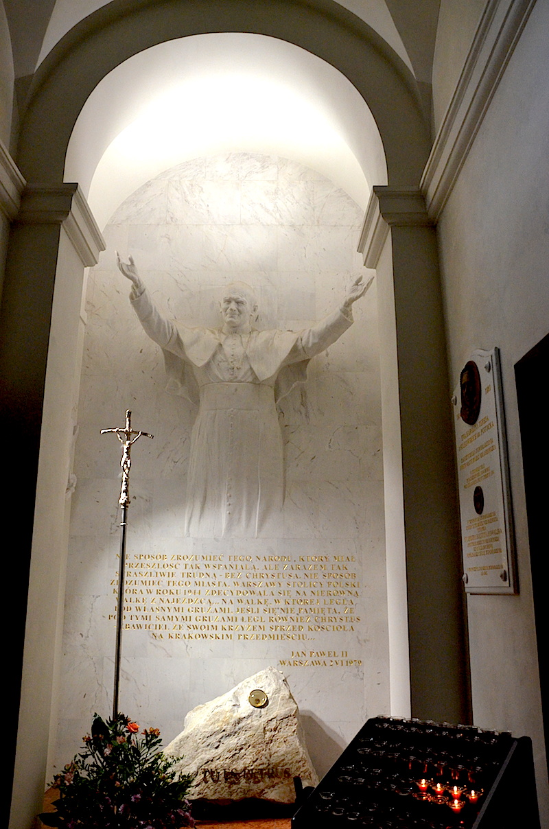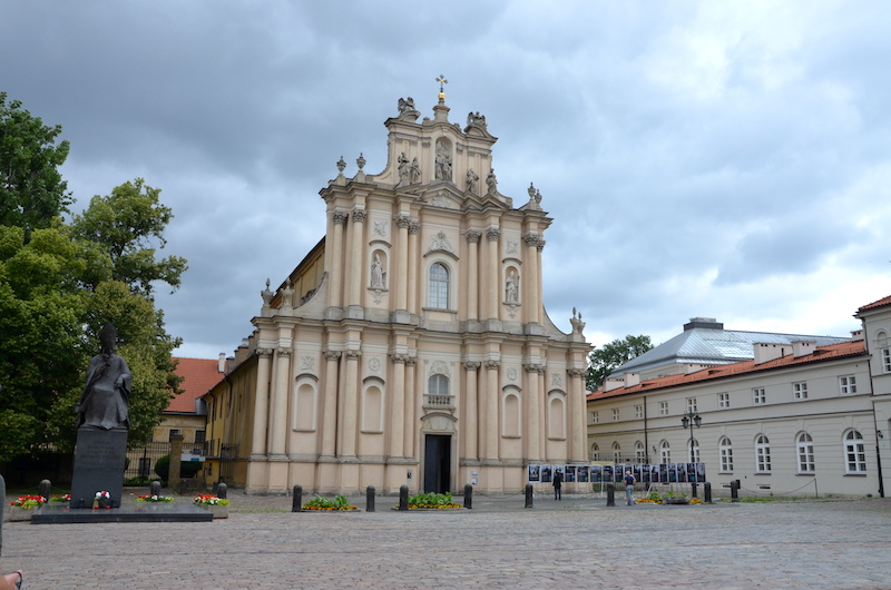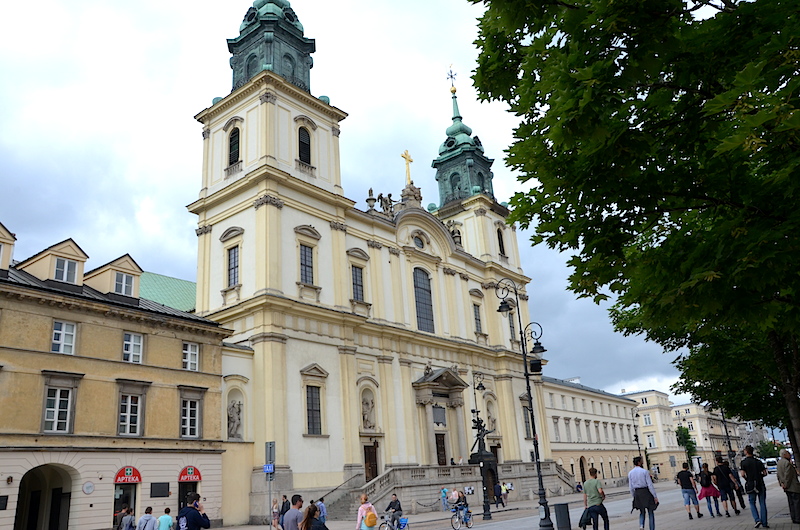 Bevor wir ins Zentrum der Altstadt schlendern, laufen wir ein Stück weit, den Königsweg entlang. Er führte einst von Krakau nach Warschau und endet dort am Königsschloss. Wer vom Schloss auf dem Königsweg Richtung Süden läuft kommt direkt zum Palast Wilanow, der ca. 10 Kilometer außerhalb der Stadt liegt und sich für einen Besuch ebenso lohnt (ich habe es leider nicht geschafft). Wir laufen aber nur ein paar Schritte die Fussgängerpassage hinunter, vorbei an Cafés, der Universität, einigen Kirchen und dem Präsidentenpalast. Heute residiert hier der polnische Präsident, 1955 wurde hier der Warschauer Pakt geschlossen. Das Hotel Bristol wirkt wie ein Palast für sich, davor parken ausschließlich schwarze Limosinen. In der Heilig-Kreuz-Kathedrale befindet sich in einem Seitenaltar eine Statue von Papst Johannes-Paul II. und die Urne mit dem Herz von Fredéric Chopin – dem berühmtesten Sohn der Stadt. Überhaupt findet man an fast jeder Stelle in der Altstadt von Warschau einen Hinweis auf den berühmten Pianist Chopin, der hier gelebt hat, z.B. die schwarzen Parkbänke, denen man folgen kann. Per App, die man sich runterladen kann, kann man Selfies mit Chopin schießen oder seine Kompositionen anhören.