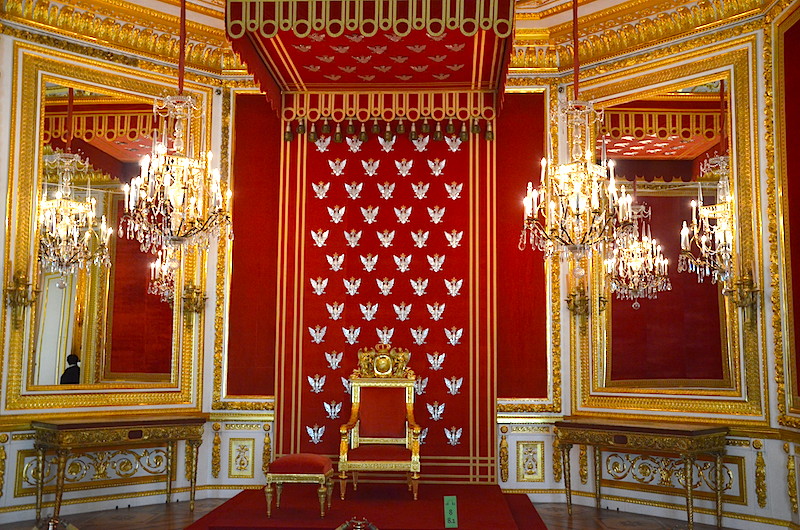 Neben der Altstadt ist das Königsschloss von Warschau (Zamek Królewski) eine der wichtigsten Sehenswürdigkeiten der Stadt. Ein Besuch lohnt sich, da man Einblick in die prunkvollen Säale und Gemächer erhält und sogar fotografieren darf. Vor allem der Ballsaal mit seinen vergoldeten Spiegeln und der Statue von Chronos, der die Welt auf seinen Schultern trägt, der Thron der polnischen Könige und der Marmorsaal sind sehenswert. Die Ursprünge gehen auf erste Schlossbauten der Herzöge von Masowien aus dem 13. Jahrhundert zurück. 1596 wurde die Haupttadt Polens von Krakau nach Warschau verlegt, seit da an gewann das Schloss an Bedeutung. Doch erst unter König Stansilaus II, dem ersten und langjährigen Geliebten von Katharina der Großen, der Zarin von Russland, wurde das Schloss so prunkvoll ausgebaut. Auf dem Schlossplatz scheint immer viel los zu sein. Bei unserem Besuch gab es grade Konzerte des Polizeichors vor dem Schloss.