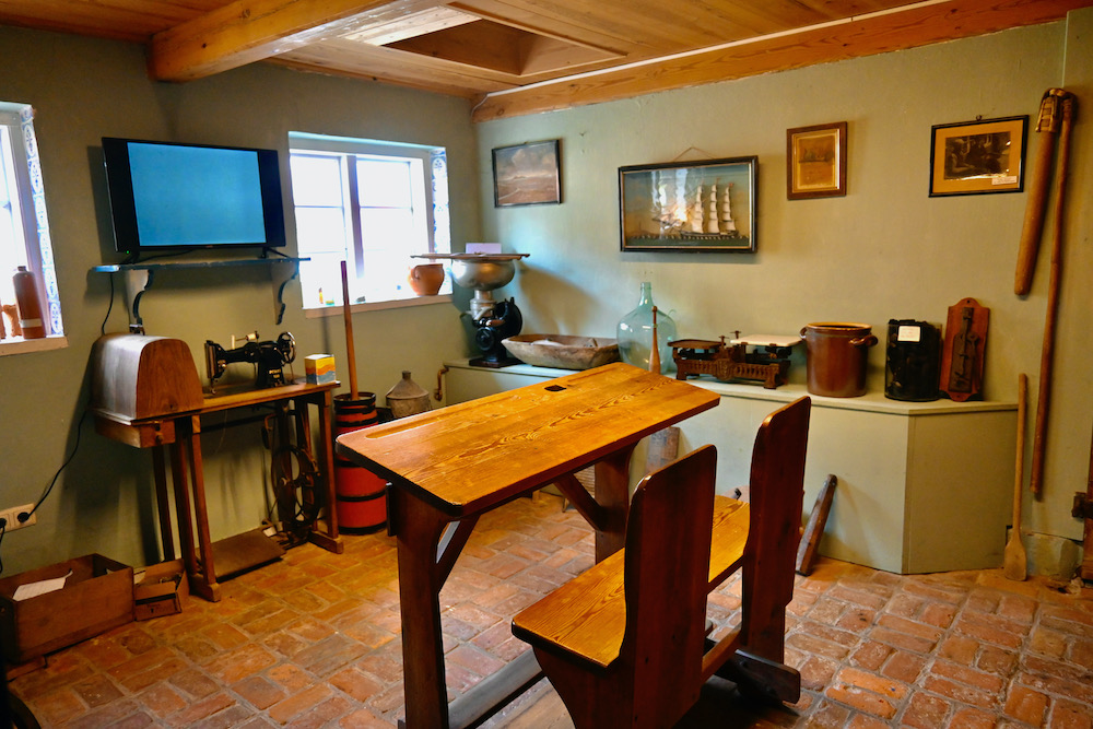 Wir stöbern durch den Souvenirladen, am Eingang sind alte Schuhe, die von der Nordsee angespühlt wurden, aufgestapelt. Innen drinnen sieht es aus wie in einer alten Friesenstube aus dem letzten Jahrhundert. Allein deshalb lohnt es sich schon. Dann schauen wir uns im Sturmflutkino den kurzen Film über die Sturmfluten an. Wenn die Flut kommt, ist „Land unter“ auf Hallig Hooge. Die Menschen bleiben während der Flut, verschließen Vieh und Habseligkeiten hinter Toren auf den Warften und harren in ihren Häusern aus, bis das Wasser wieder geht. Was für die Bewohner Normalität ist, würde mich in Panik versetzen. Zwei bis dreimal im Jahr kommt es zu Sturmfluten, die die Hallig Hooge komplett überfluten. Doch wegen des Klimawandels kommen die Fluten häufiger und der Wasserpegel steigt stärker und schneller an. Für die Hallig-Bewohner ist das eine drohende Gefahr. Es ist fraglich wie lange, das Leben so hier noch funktionieren kann. Klimaexperten sagen den Untergang der Halligen schon heute voraus. Ich schaue mich in der alten Friesenstube um. Jahrhunderte hat sie überlebt und es sieht noch immer so aus als wäre der nostalgische Charme an den alten Holzwänden abzulesen. Doch ob die Friesenstube das nächste Jahrhundert überleben soll ist angesichts des Klimawandels die große Frage. Die Bewohner scheinen sich hier trotzdem wohl zu fühlen. Es gibt eine ganze Schar schulpflichtiger Kinder auf Hallig Hooge.